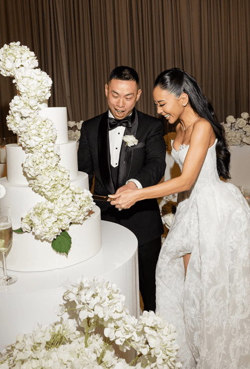 Held at Leonda By The Yarra, Hong and Rob’s wedding was centred around a clean, all-white palette with a strong focus on floristry and soft draping throughout the space.